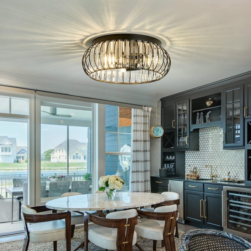 - CLOSE TO CEILING LIGHT DESIGN -- Round ceiling light with elegant and rustic look, not only a farmhouse lighting, but also a modern beautiful decoration. Indoor ceiling fixtures flush mount design creates a comfortable and modern ambiance to your house.