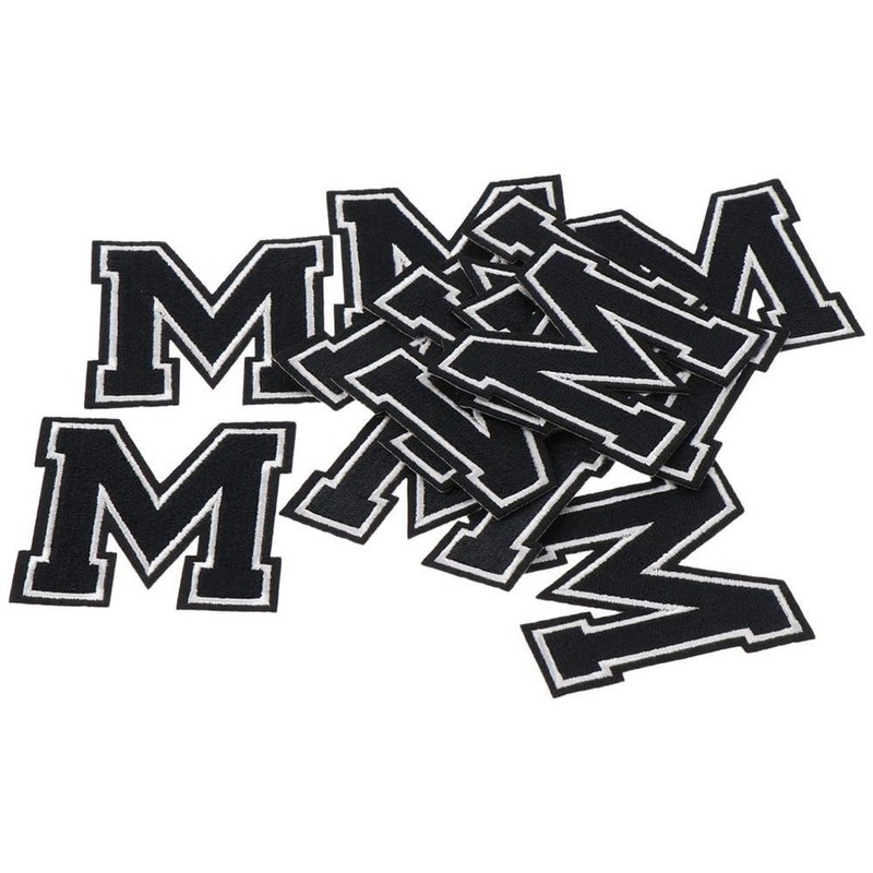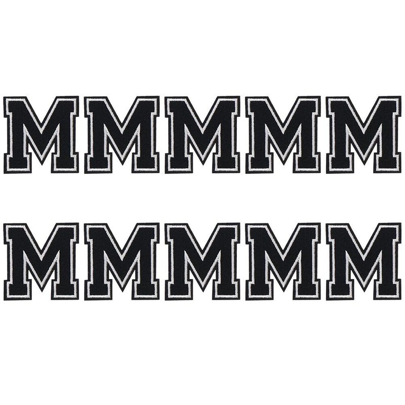 YYlingx 10Pcs Black Letter M Embroidered Patches, Full Embroidery Letter Patch, Decorative Embroidered Sew on/Iron on Patches for Jackets, Hats, Backpacks, Jeans, DIY Clothes