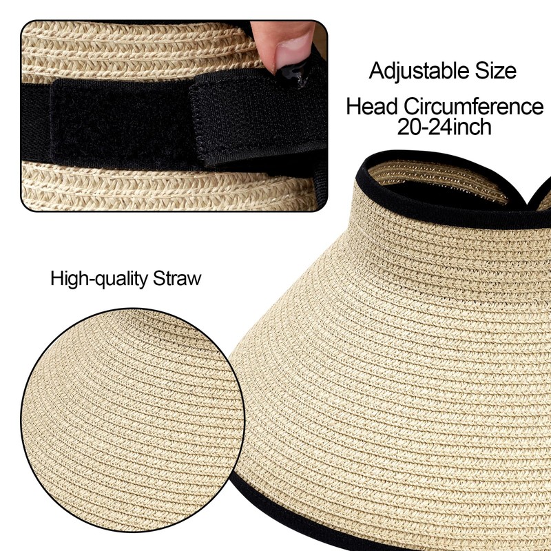 - Adjustable Size Fits Most: These straw sun hats come with an adjustable hook and loop fastener at the back, ensuring a comfortable fit for most head sizes; enjoy your time in the sun without worrying about your visor slipping off