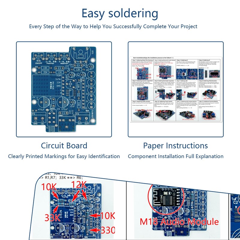 - [Detailed installation instructions] This electronic kit is not a finished product, you need to solder it by yourself. We provide detailed paper instructions in the package to keep your soldering process away from the screen.
