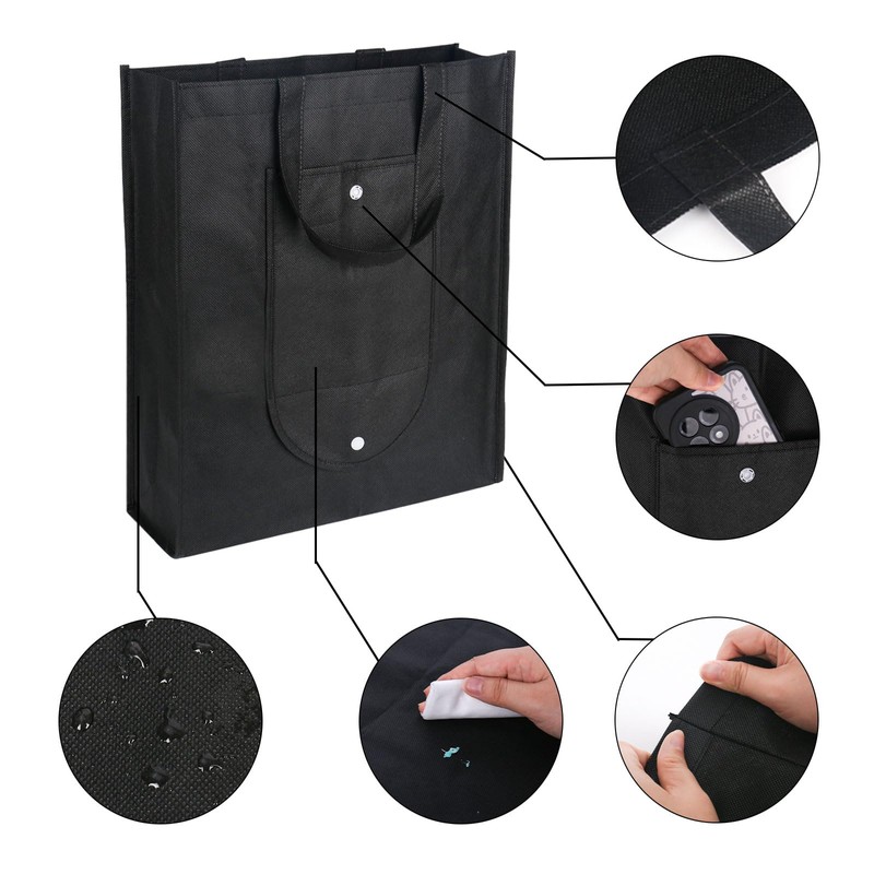 - Top Quality The foldable shopping bag is made of high quality non-woven fabrics and easy to clean. The robust material is water-repellent from the outside and inside. The bag base is thickened for more safety and reinforced seams ensure up to 20 kg load capacity