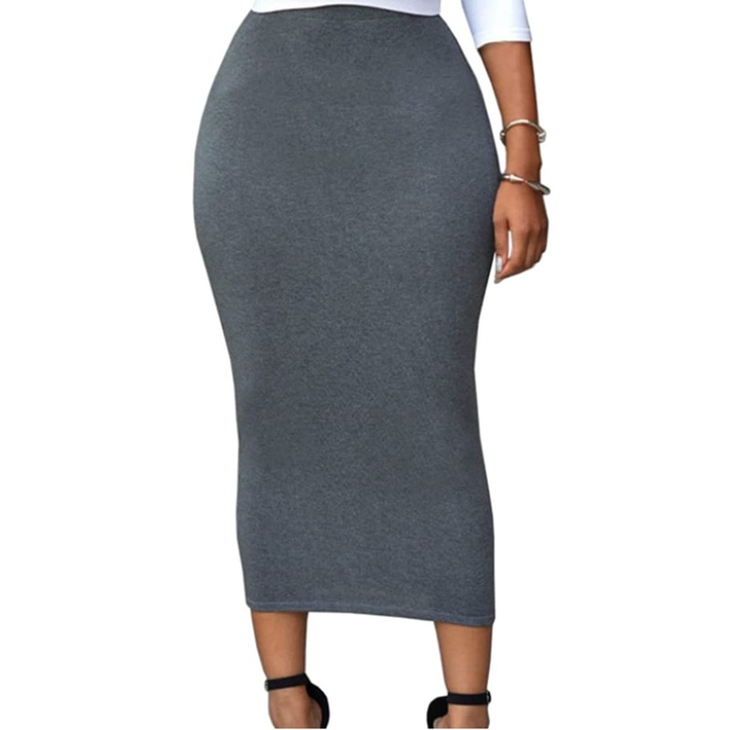 YYUNANG Women's Elegant High Waist Stretchy Long Pencil Skirt Hip Skirt Party Club Night Out Below Knee Skirt, gray