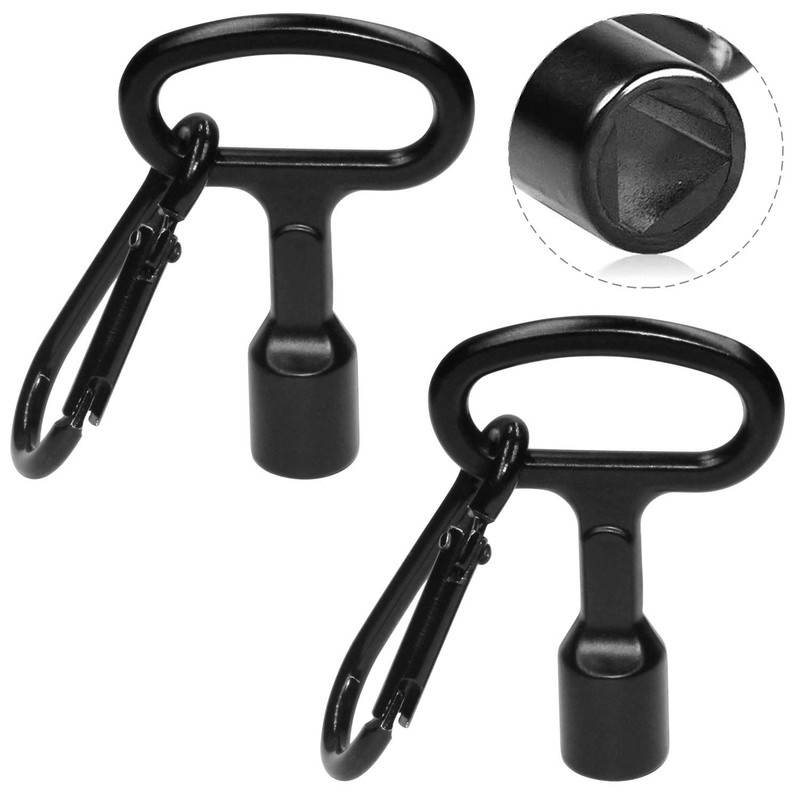 YYWEi Triangular Key Universal Triangular Fasteners 3 Sided Key Triangular Tap Key with Carabiner Hook Triangle Key Black for Radiator Wheelie Bin Lift (Pack of 2)