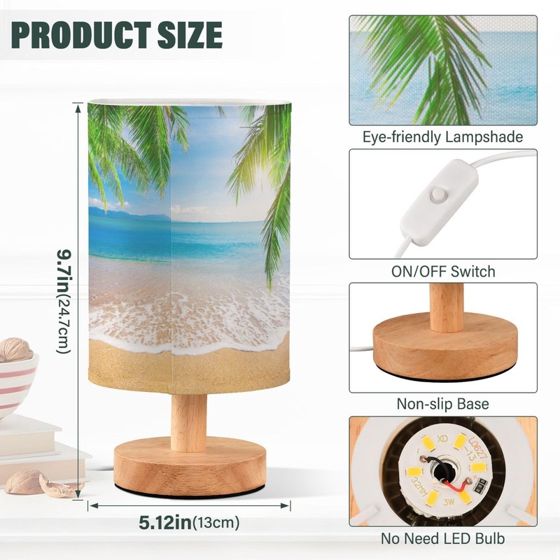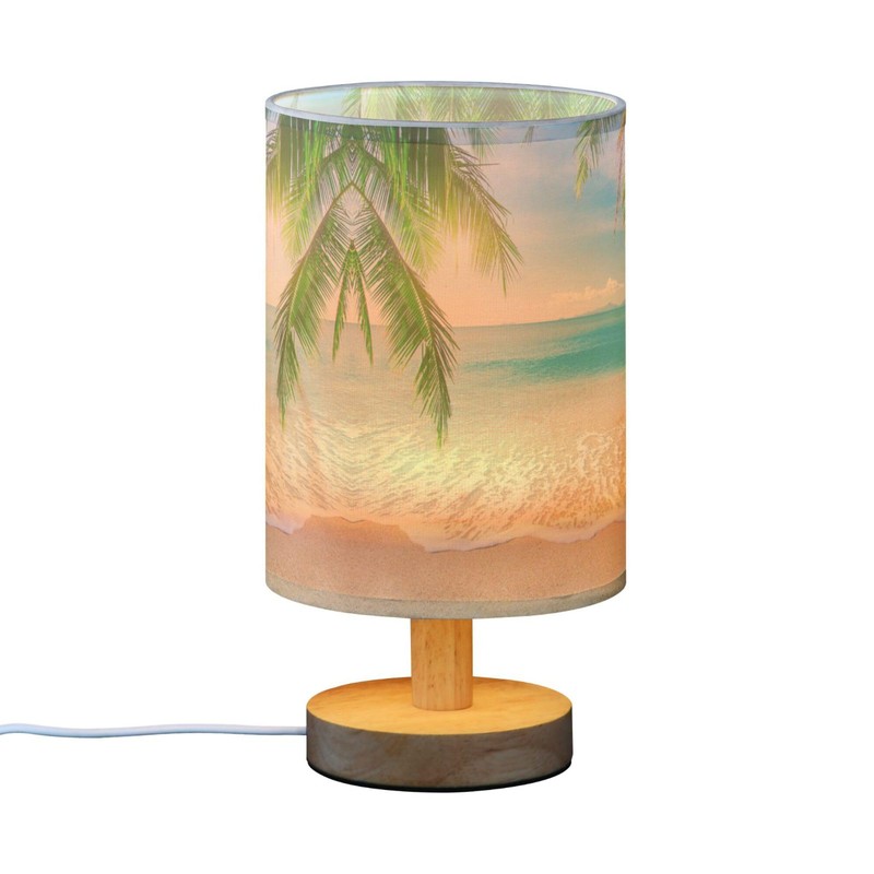 YYZZH Table Lamp Palm Leaf Tropical Beach Summer Blue Ocean Sky Nightstand Lamp with Wood Base Fabric Lamp Shade Bedside Desk Lamp for Living Room Bedroom Kids Room Office