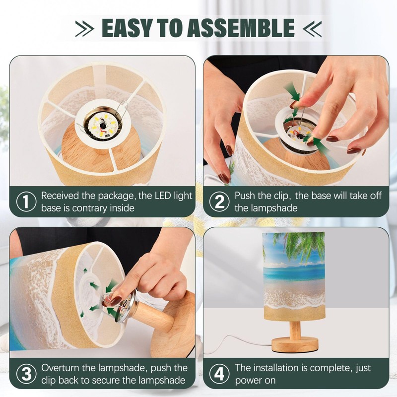 YYZZH Table Lamp Palm Leaf Tropical Beach Summer Blue Ocean Sky Nightstand Lamp with Wood Base Fabric Lamp Shade Bedside Desk Lamp for Living Room Bedroom Kids Room Office