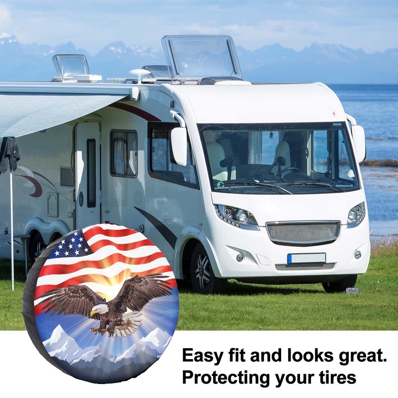 YZ-MAMU Spare Tire Cover American Eagle Flag Polyester Universal Waterproof Corrosion Protection Wheel Covers for Trailer RV SUV Truck and Many Vehicles 14 inch