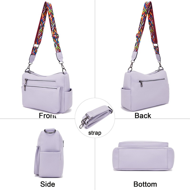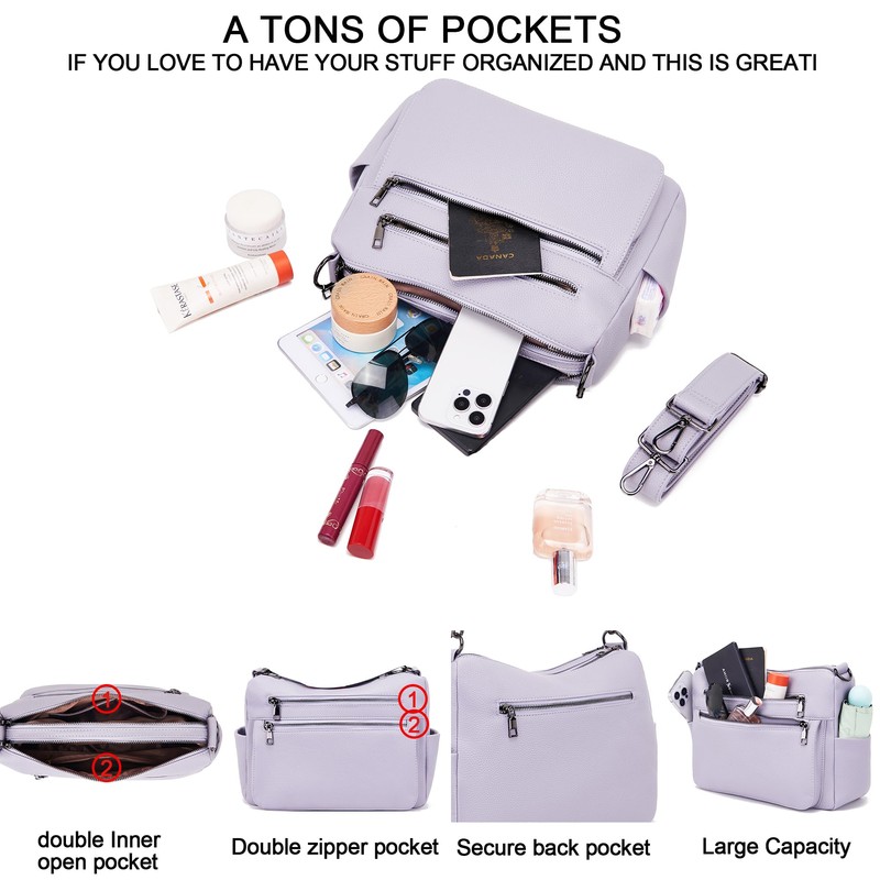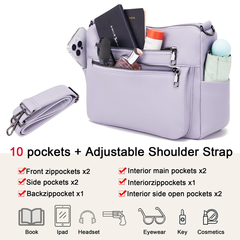 YZAOLL Large Crossbody Bags for Women Vegan Leather Tote with Adjustable Wide Strap Water-resistant Work Purse with 10 Pockets Purple