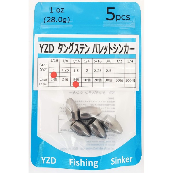 • YZD Tungsten Bullet Sinker TG 0.9 oz (28 g) 1oz [5 pieces]
