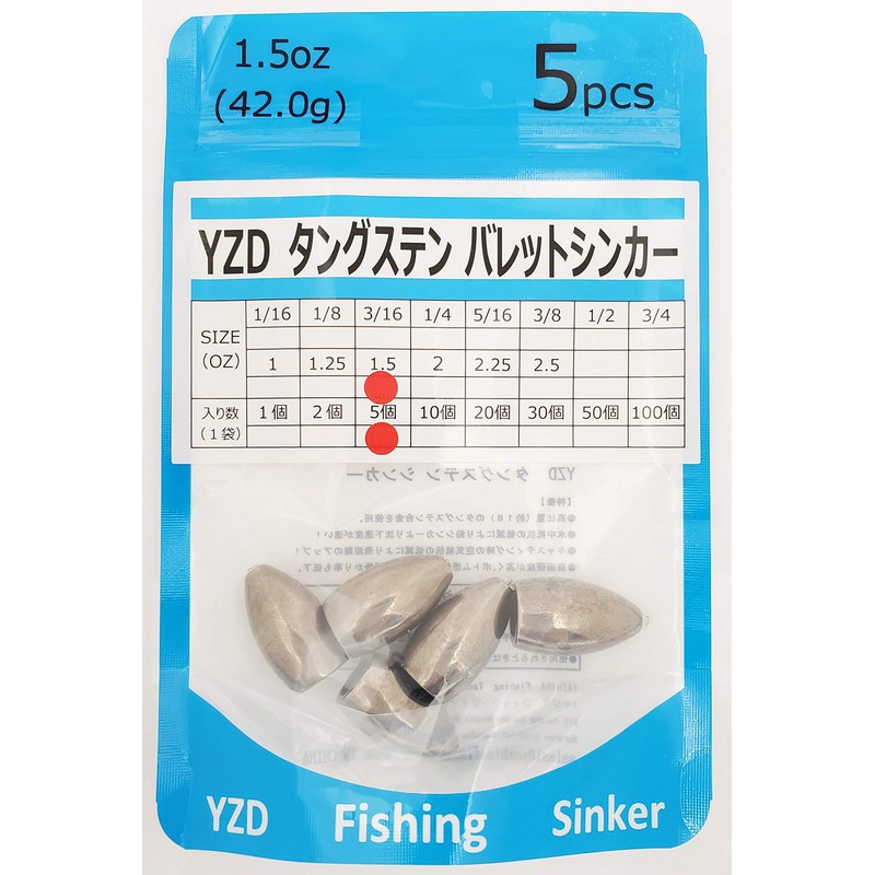 - YZD Tungsten Bullet Sinker TG 42g 1.5oz (42g) [5 Pieces]