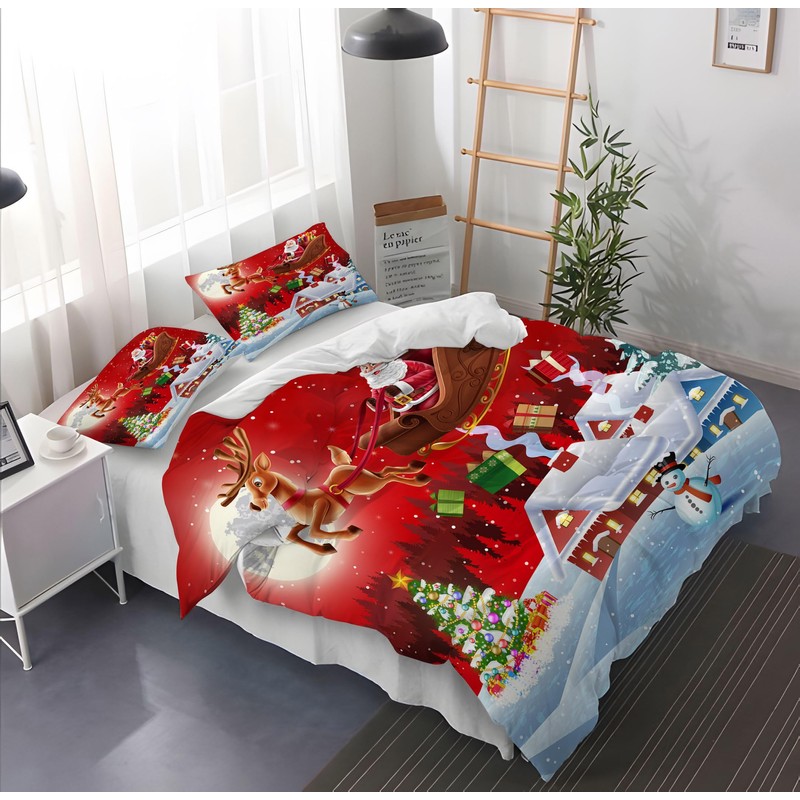 - Christmas design: Santa Claus deer pattern design: Santa, snowman, snow and all Christmas elements, perfect Christmas decoration duvet cover.