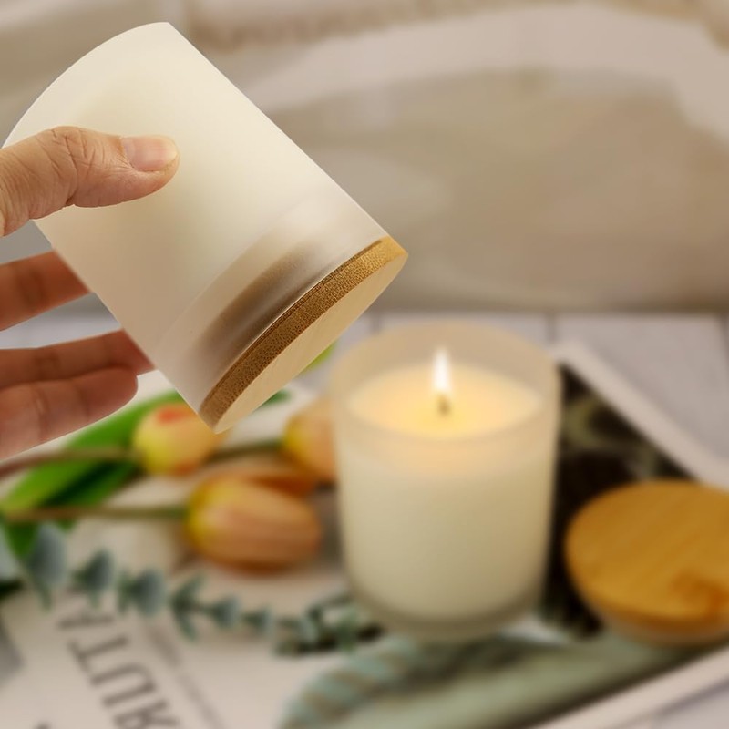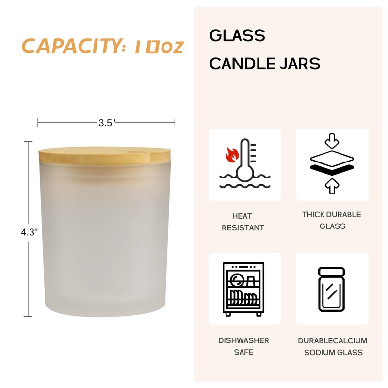 YZEROBAMB 12 Pack 10 OZ TThick Heat-Resistant Glass Candle Jars with Bamboo Airtight Lids, Empty Storage Container DIY Candle Making Jar, Labels, Gifts, Frosted White