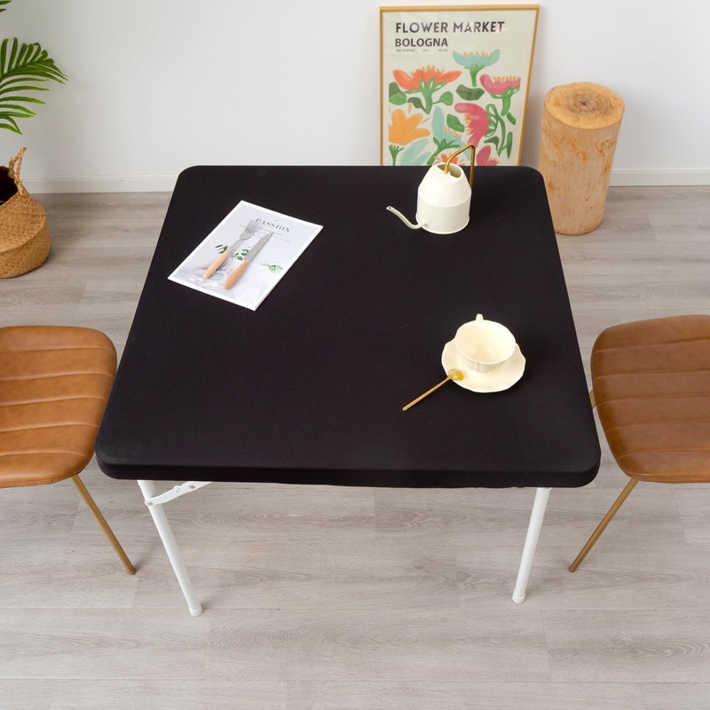 - Proper Size: 36X36 inch square solid black elastic table cover fits 36 inch square table tops. For square table tops only, table tops should be less than 2 inches thick.