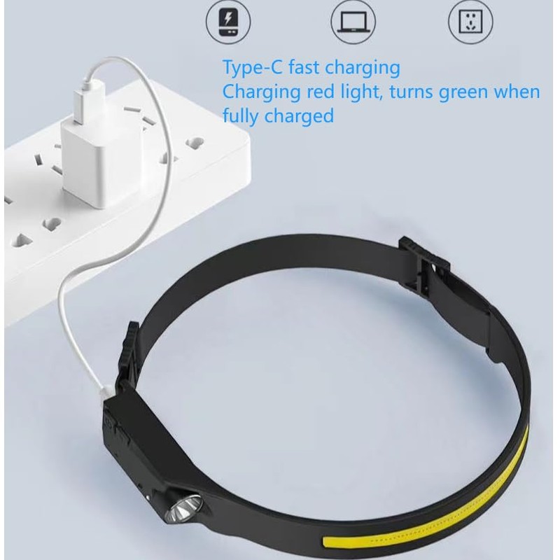 - USB Rechargeable Head Lamp:Equipped with a USB charging line and the charging port is type-C, It only takes 2 hours to charge the head lamp fully, The use time can reach 3-8 hours. weighs about 67 g.