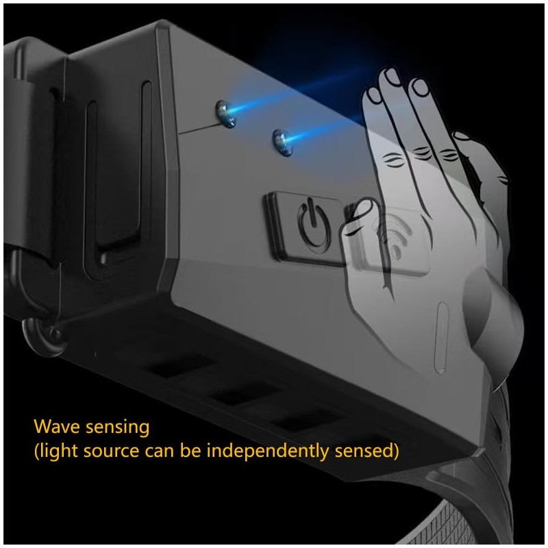 YZYOE Rechargeable LED Silicone Headlight with Induction, Outdoor Portable Mini Head Mounted Light, 5-Mode Suitable for Running, Camping, Home, Work, and More.