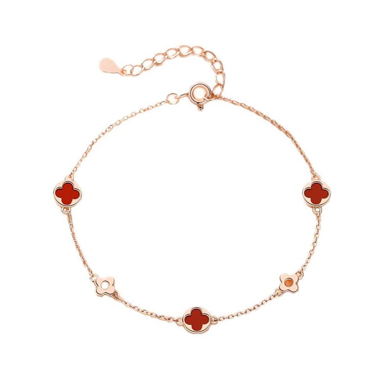 Z.Angie Women's Four Leaf Clover Bracelet, Lucky Bangle, Natural Agate, 925 Silver, 18K Gold RGP, Hypoallergenic, Women's Accessories, Valentine's Day, Birthday Gift, Gift Box Included, Sterling