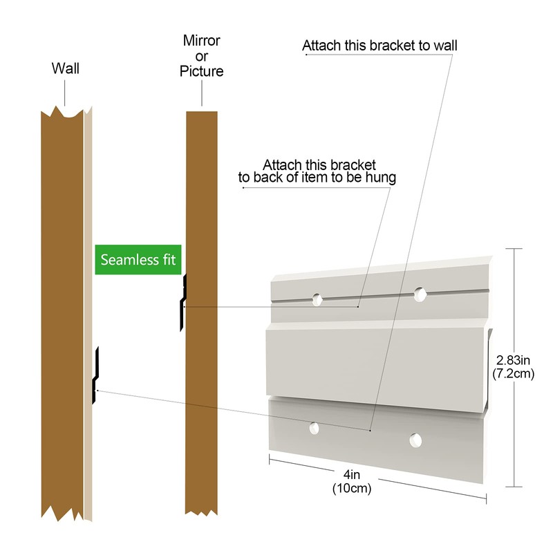 - ✅[Highly flexible] French splint picture hook, Z-clamp interlocking wall bracket plastic kit, used to hang mirrors, panels, shelves, headboards, artworks, cabinets, whiteboards, artwork frames, and can be easily installed after installation Mobile fixtures. The hanger is lifted and removed in a few seconds.