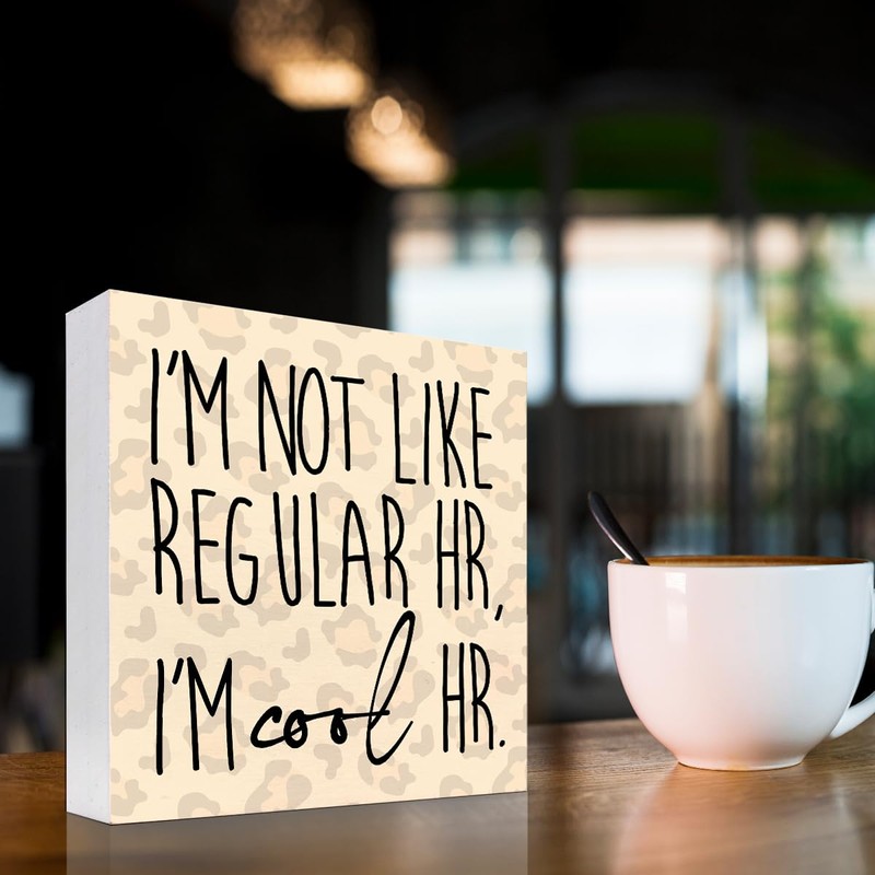 z-crange I'm Not Like Regular HR I'm Cool HR Wood Box Sign Decor Desk Sign,Funny Office Wooden Box Block Sign for Human Resource HR Office Shelf Table Decor Decorations Leopard