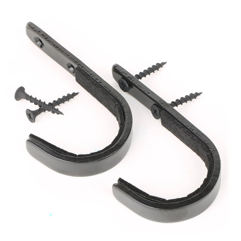 - One Set (2) of 1/8" x 1/2" Flat Steel Bar Gun Hooks. Perfect countersink of the holes to ensure a flush fit of the black screws that are provided.