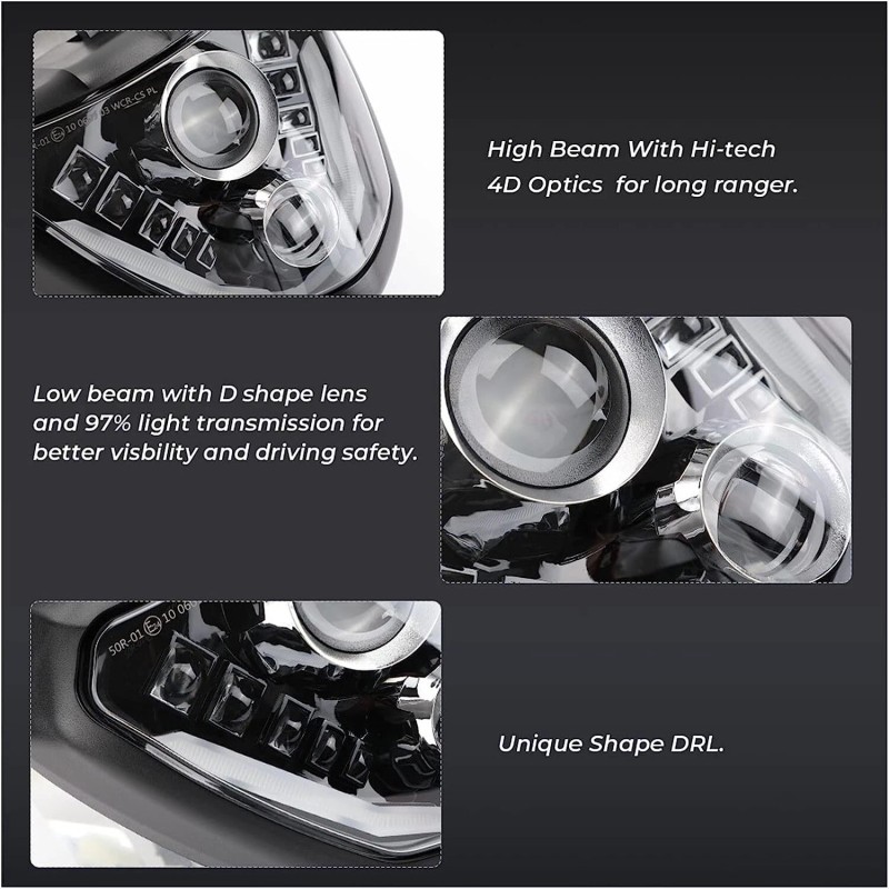 【 Product certification】The Headlight carries the European Union's E24-mark and the DOT certification guarantee your lights are Compliant in the United States Department of Transportation for use in the U.S. & Canada to secure the safety of others.