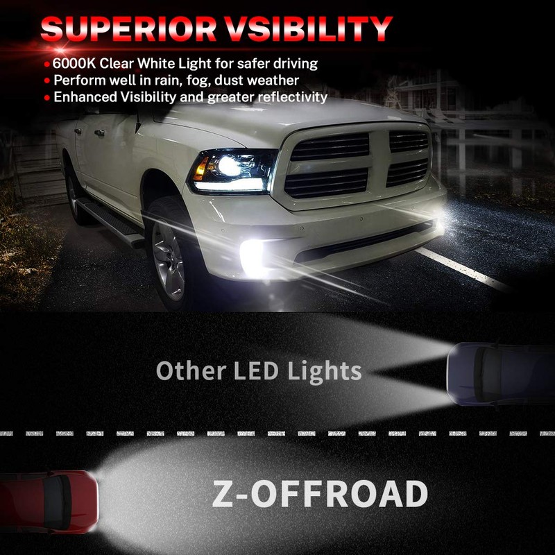 Z-OFFROAD New Version LED Fog Lights Compatible with Dodge Ram 1500 2013 2014 2015 2016 2017 2018 Bumper Driving Fog Lamps Replacement – 1 Pair Silver
