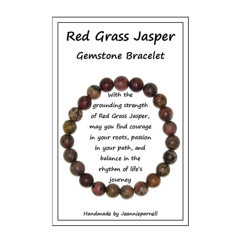 Z017RGJ - 8mm Red Grass Jasper Gemstone Bead Bracelet - Grounding and Stability – Courage and Strength - Passion and Vitality - Nurturing and Healing - Balance and Harmony Handmade by Jeannieparnell