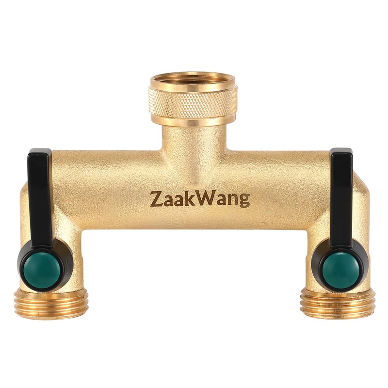 ZaakWang Brass Garden Hose Splitter, 3/4" 2 Way Tap Splitter,Hose Tap Splitter Connection with 2 Individual On/Off Valve and Extended Handle, Hose Pipe Tap Splitter can Mounting Two Timer