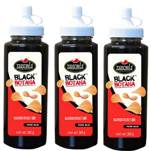 3 ZAASCHILA BLACK BOTANA SAUCE - 265g EA. SALSA NEGRA CON CHILE Y LIMÓN. Condition is "New". Shipped with USPS First Class.