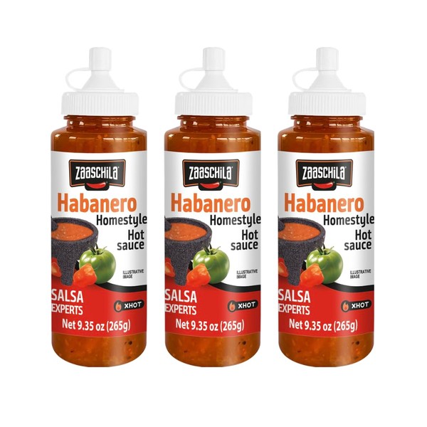 Zaaschila Mexican Sauce Habanero - 9.35oz (265g) 3-Pack - Spicy & Bold Flavor, Perfect for Sandwiches, Tacos, and More