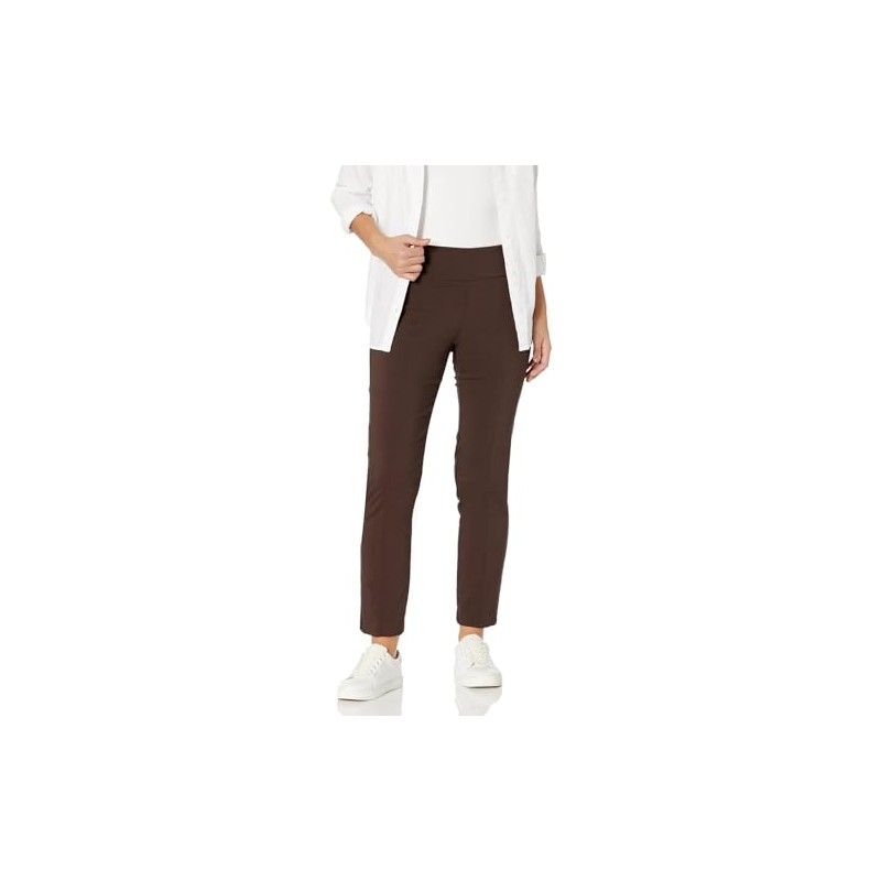 Zac & Rachel Women's Millennium Fabric Pull-On Slim Leg Pant, Chocolate, 18W