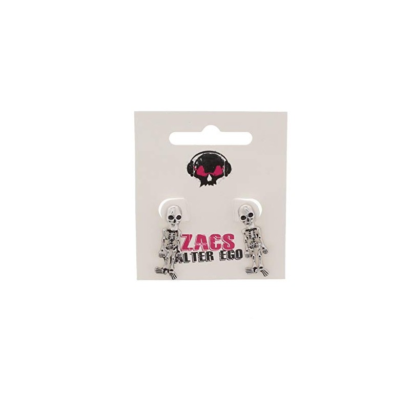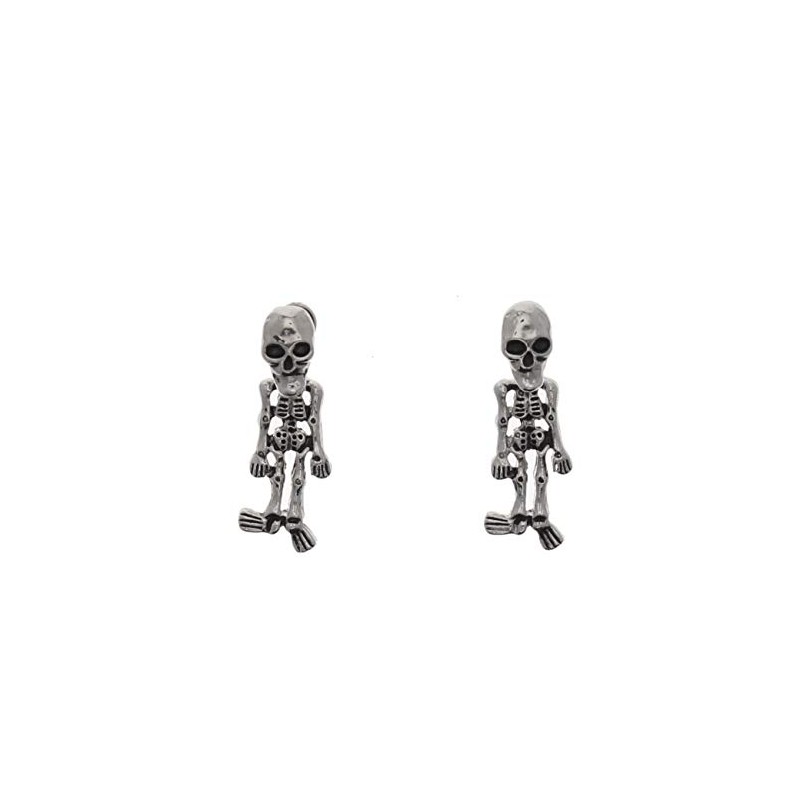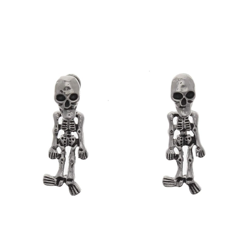 Zac's Alter Ego Alternative Cool Skull Stud Earrings with Dangling Skeletons