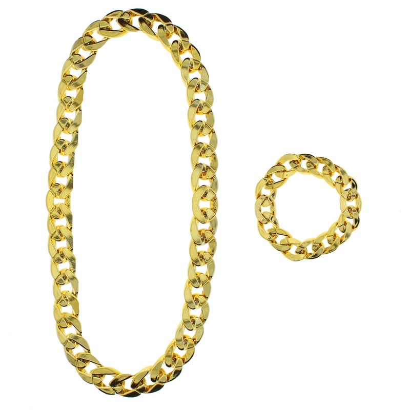 Zac's Alter Ego Fancy Dress Thick Gold Gangster Chain Necklace & Bracelet Set
