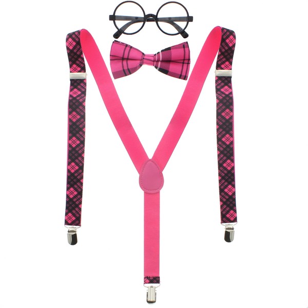- Includes Pink Tartan Bow, Pink Tartan Braces & Nerd Glasses, Product Dimensions: