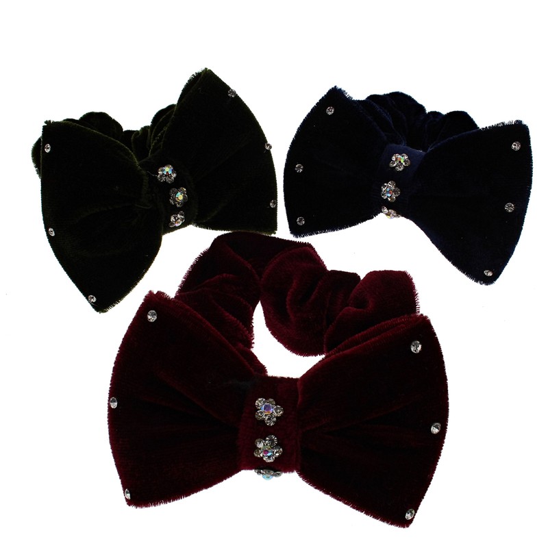 Zac's Alter Ego Set of 3 Velvet Scrunchies with Bow & Rhinestones