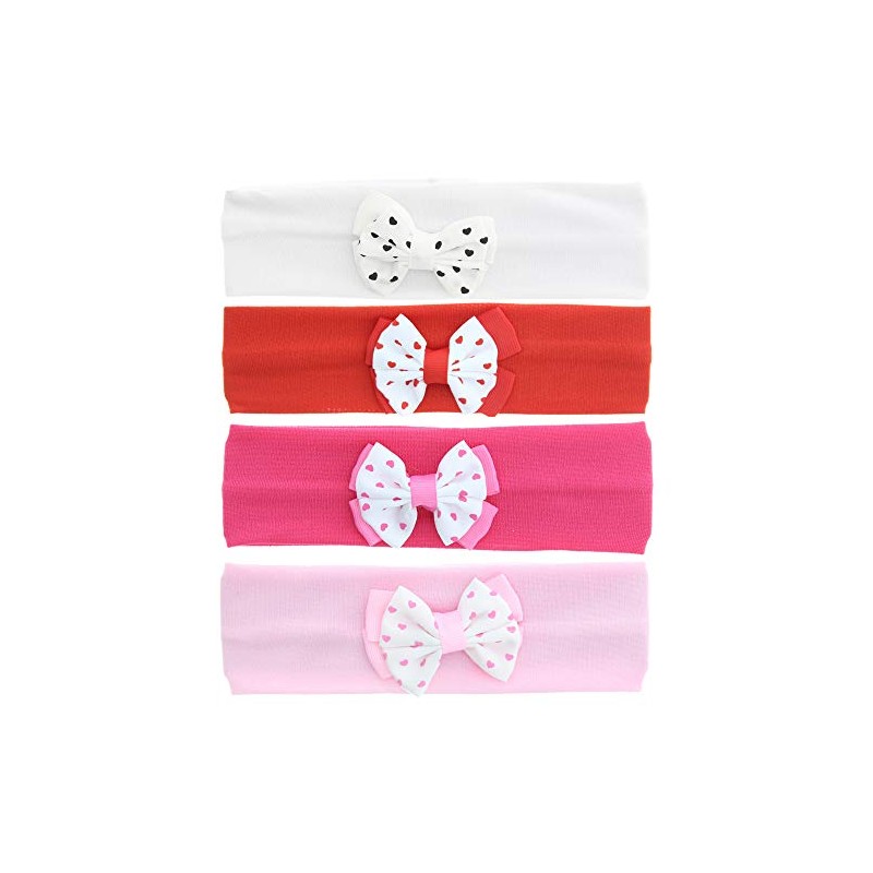 Zac's Alter Ego Set of 4 Assorted Pastel Baby/Kids Headbands with Heart Polka Dot Print Bow