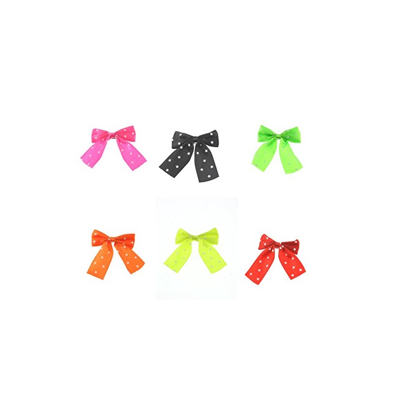 Zac's Alter Ego Set of 6 Large Satin Star Print Neon Pop 80s Hair Bow Barrettes