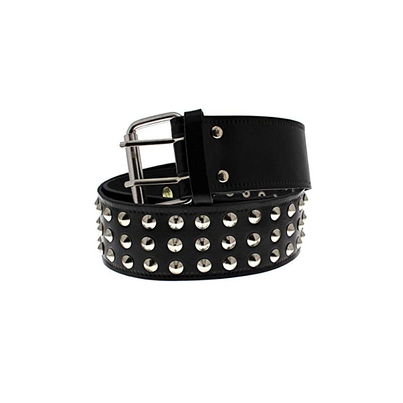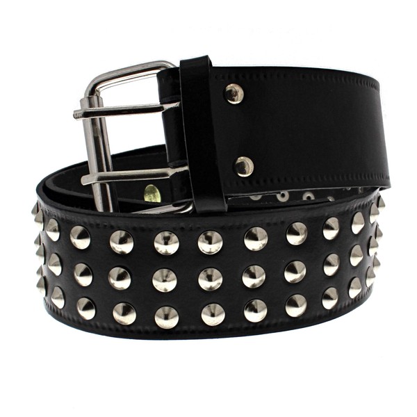Zac's Alter Ego Three Row Silver Conical Studded Black PU Belt