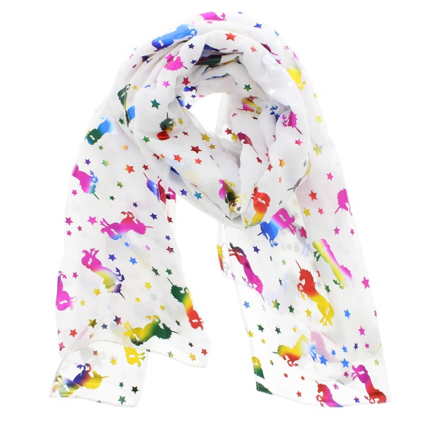 Zac's Alter Ego Women Ladies Scarf with Rainbow Foil Metallic Glitter Unicorn & Star Print