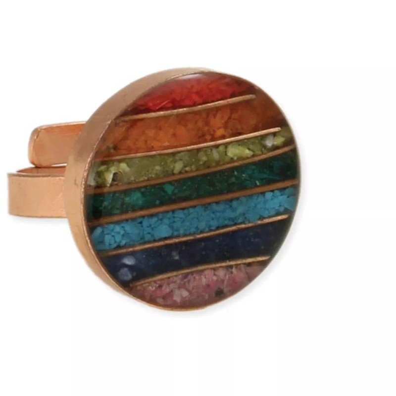 ZAD Perfect Balance Chakra Rainbow Stone Chips Round Ring