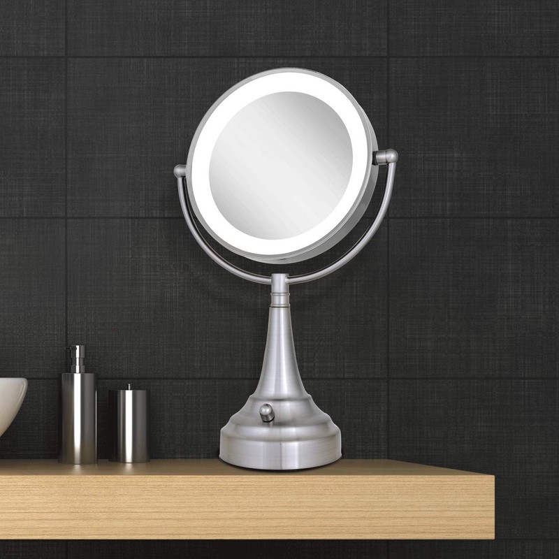 Zadro 10x Mag Next Generation LED Cordless Double Sided Round Vanity Mirror, 11-Inch, Satin Nickel Finish, Silver (LEDSV410)