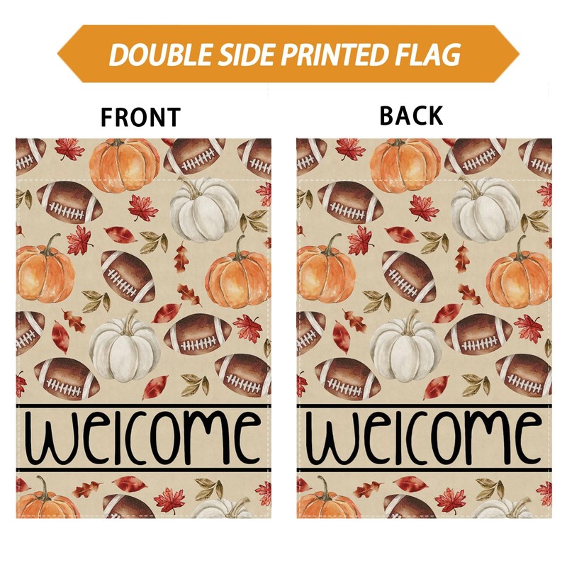 ZAEW Fall Welcome Pumpkins Footballs Maple Leaves House Flag Large 28X40 Inch Autumn Vertical Double Sided for Outside Yard Outdoor Farmhouse Holiday Decoration