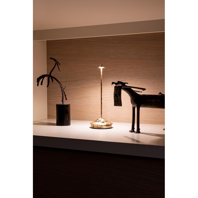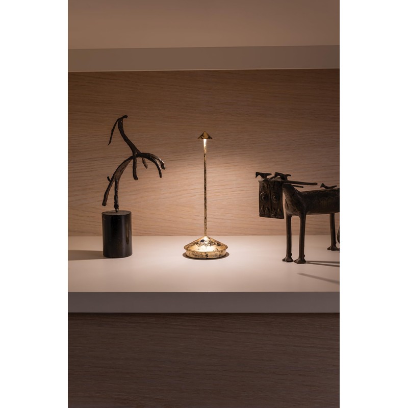 Zafferano, Pina Lamp, Wireless, Rechargeable Table Lamp with Touch Control, Suitable for Indoor Use, Dimmer, 2200-3000 K, Height 29 cm, Colour Black - Crackle Gold Leaf