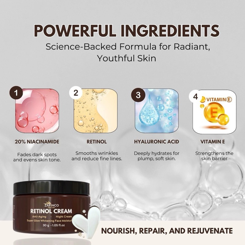 Zafinco Retinol Anti Wrinkle & Anti aging Face Cream for Night Niacinamide 20%