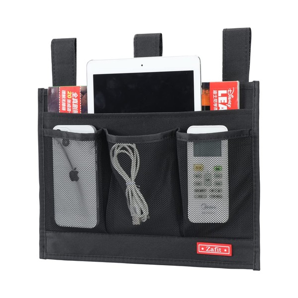 Zafit Hanging Bedside Caddy, Bedside Storage Organizer for Magazine, Phone, Remote control (Classic4 Pockets-Black)