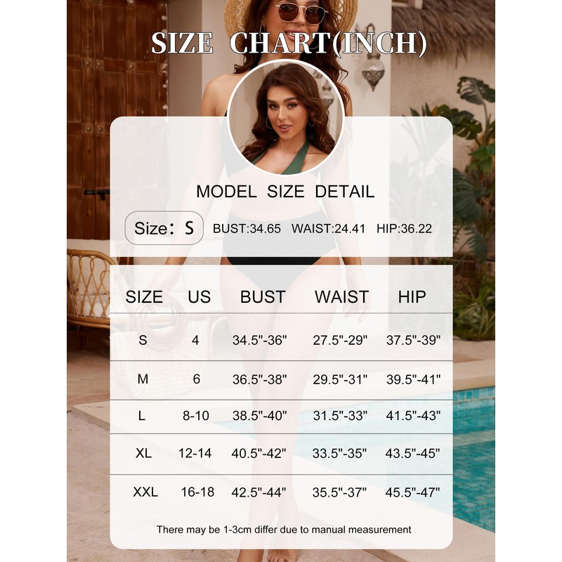 - Halter Bikini Top: The adjustable straps and removable cups on the top allow for a customized fit and excellent support. The v-neck and twist front design are modest and flattering