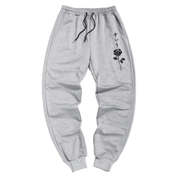 ZAFUL Printed Sweatpants for Men Casual Joggers Graphic Drawstring Sweat Pants Stretch Loose Solid Athletic Pants Rose Grey L