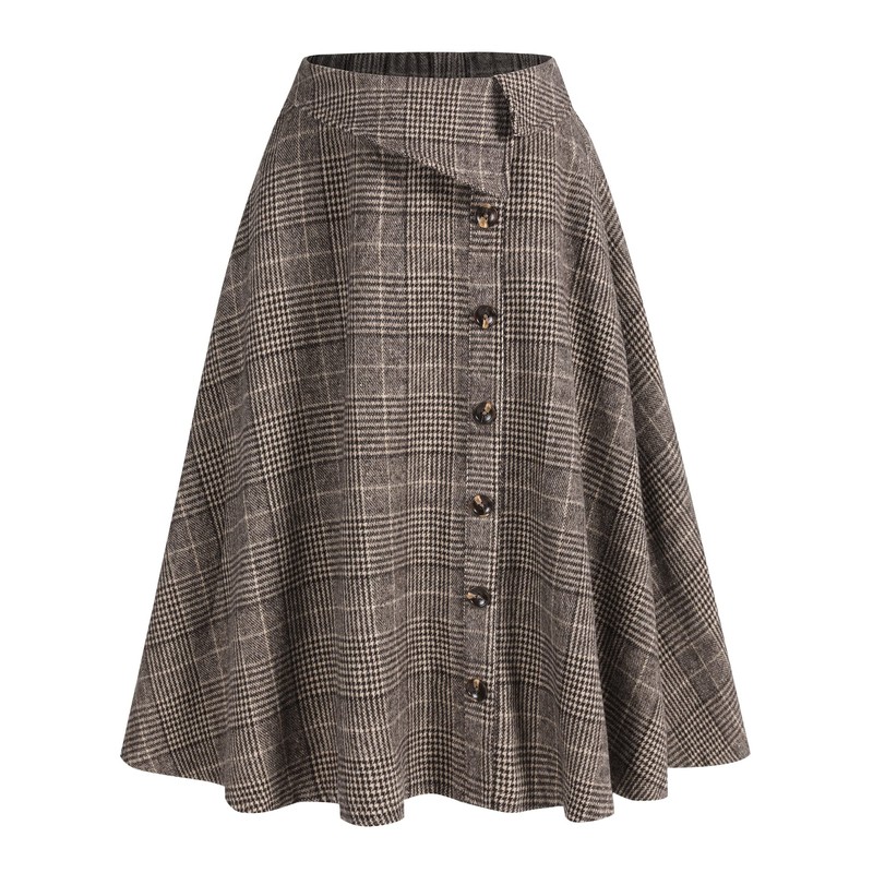 - Features: Elastic waistband on the back, high waisted, concealed side zipper closure, unique lapel waist details and decoration buttons, classic woolen plaid midi skirt, suitable for spring/fall/winter