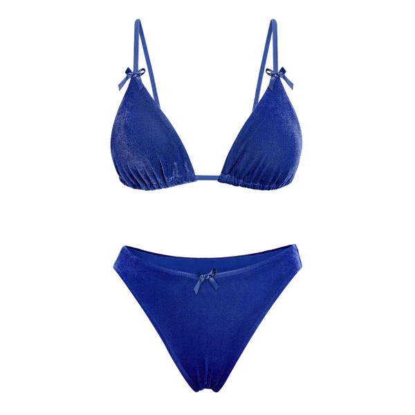 ZAFUL Womens Laydies Bikini Sets Cute Bow Knot Swimsuits High Cut Open Back Bathing Suit Spaghetti Strap Bikinis Deep Blue L