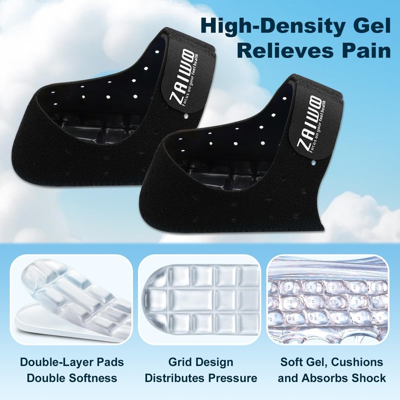 ZAIWOO Adjustable Heel Cups for Heel Pain Relief, Heel Spur Relief Products, Provide Supportive and Cushioning Gel Heel Pads Cushion for Achilles Tendonitis