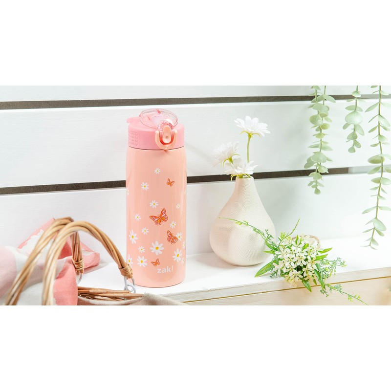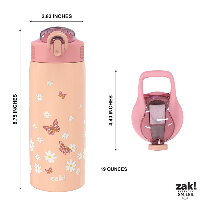 Zak Designs - Botella de agua para viajes y en casa, 19 onzas aislada al aspiradora de acero inoxidable con tapa de boquilla de bloqueo, bucle de transporte integrado, diseño a prueba de fugas