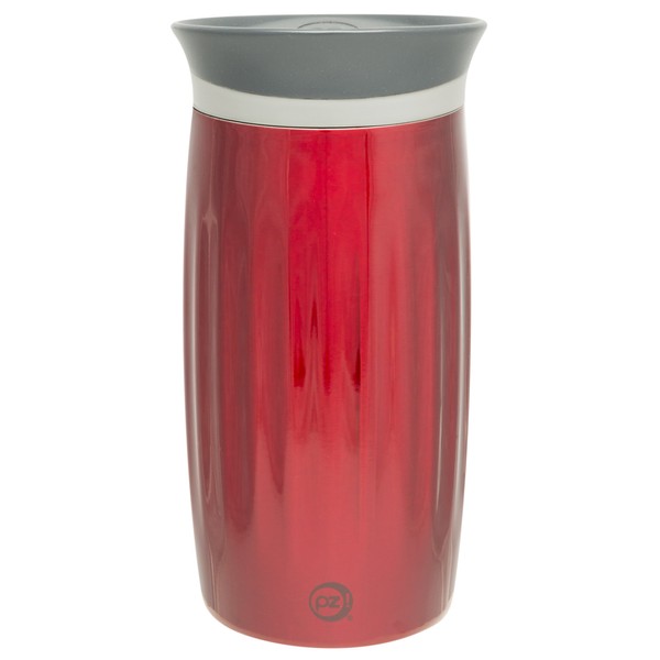 Zak Designs Fluted Stainless Steel Double Wall Vacuum Tumbler with Insulated Button Lid Ruby, 12 oz, Multicolor
